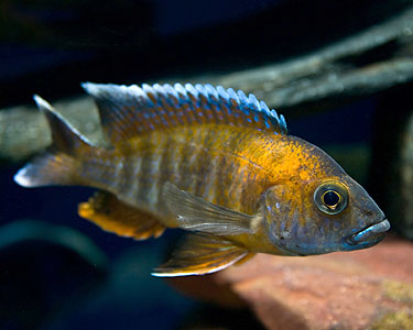 The African Butterfly Peacock Aulonocara jacobfreibergi is one of the most colorful of the Peacock cichlids. It is also one of the most variable, with natural color strains that can be very different between populations. These cichlids are some of the largest members of the Peacock family, though size too depends on the location they are from. They can range anywhere from 4 inches (10 cm) in length up to about 9 inches (23 cm).