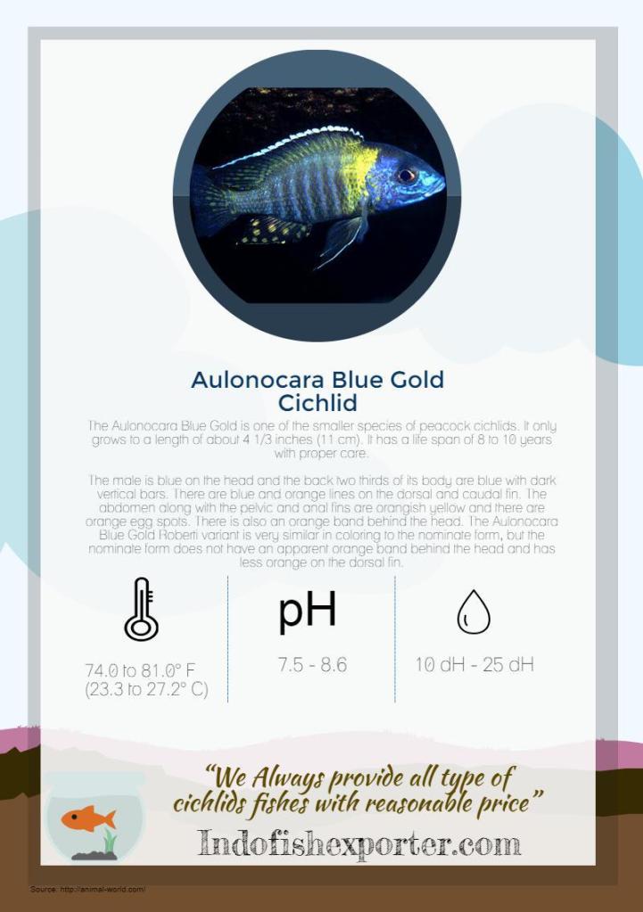 Infographic of Aulonocara Blue Gold Cichlid (Aulonocara korneliae)