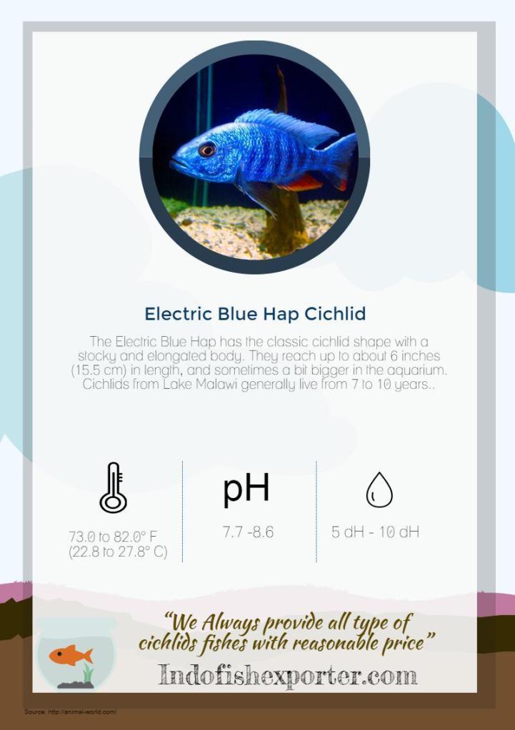 When obtaining any of these fish, it is best to know the scientific name as well as the common name to make sure you get the species you want. The Electric Blue Haps are ready breeders and the fry are easy to raise. Consequently there are many varieties that have been developed in captivity and they are not often found in their pure form. There may be no way to tell exactly what you are getting unless it is from a reputable dealer. Try and keep the different species blood lines pure.