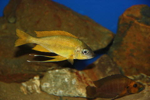 These cichlids make a great choice for the intermediate cichlid keeper, and are appealling to the advanced aquarist as well. They are moderately easy to care for as long as regular water changes are done. Provide them with a sandy substrate for building nests along with lots of rock formations for places of retreat. This fish will breed in captivity, so to avoid cross breeding don’t house them with other color varieties of Nasuta.