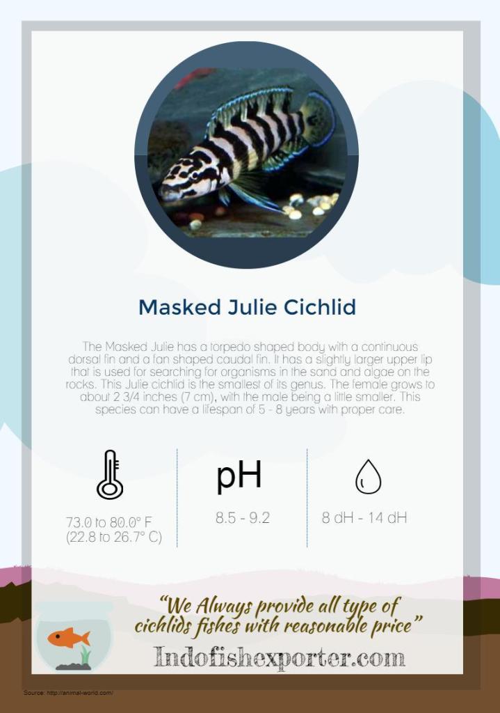 Infographic of Masked Julie Cichlid (Julidochromis transcriptus)